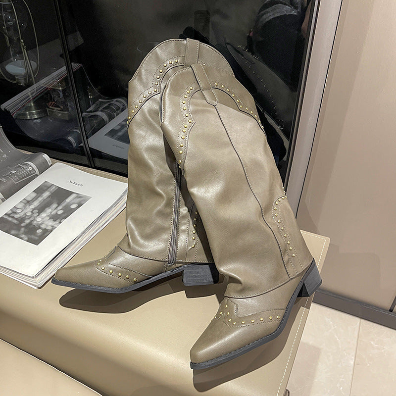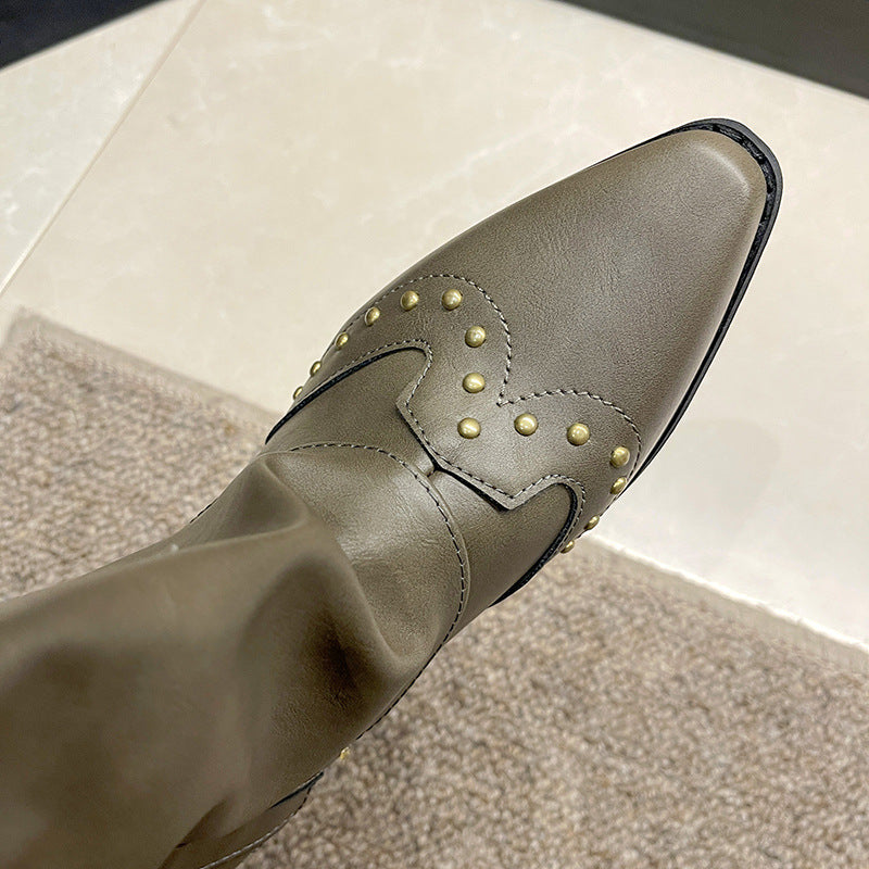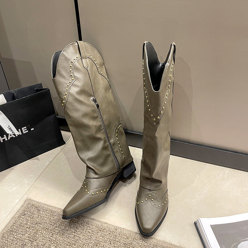 2025New Autumn Retro Pointed Toe Bootcut Boots Mid-Calf Boots for Women Hot Girl Boots Bootcut Boots Spring Autumn Winter Martin Boots