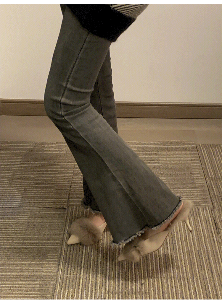 Autumn and Winter2024New Pointed Toe Furry Warm Thin Heel High Heel Mules Women Closed Toe Mules Slippers
