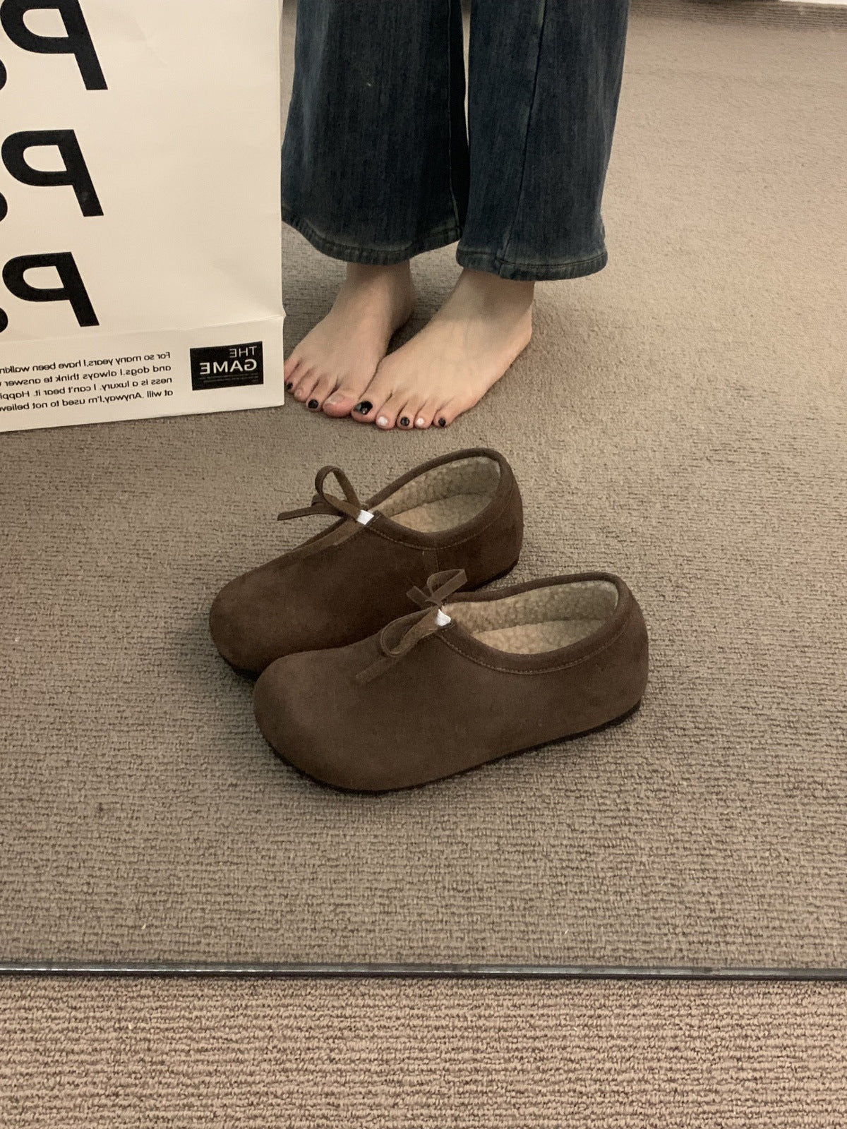 Late Night Breeze Height Increasing Thick Sole Leopard Print Fleece Lined Birkenstock Shoes for Outdoor Wear Autumn Winter Slip-On Ugly Cute Deep Mouth Beanie Cotton Shoes