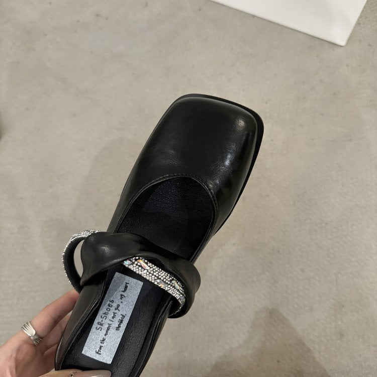Middle Heel(3-5cm)Slippers PU Closed Toe Chunky Heel Rubber