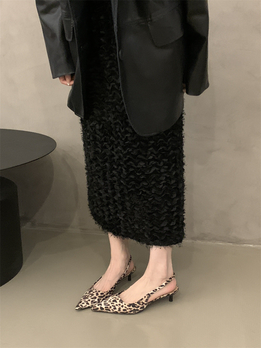 Niche high-end closed-toe sandals for women2024New Spring and Autumn Style Thin Heel Comfortable Pointed Toe Backless Single Shoes