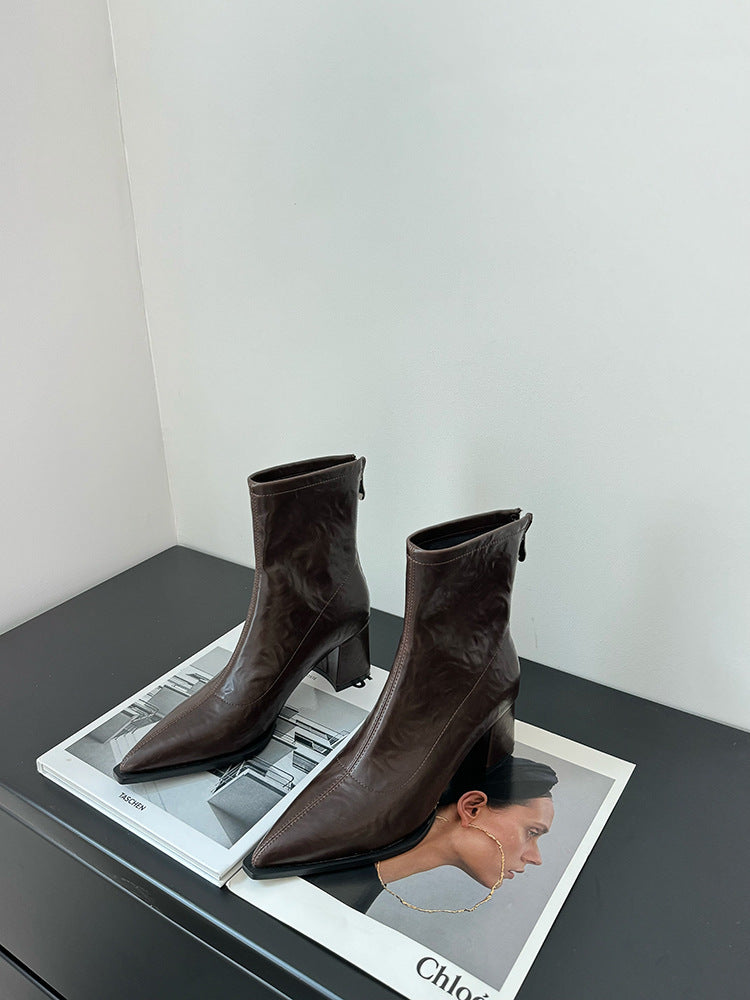 Pointed Toe Short Boots for Women2024New Autumn Winter Women's Boots Niche Slim Boots Design Sense Chunky Heel High Heel Short Boots