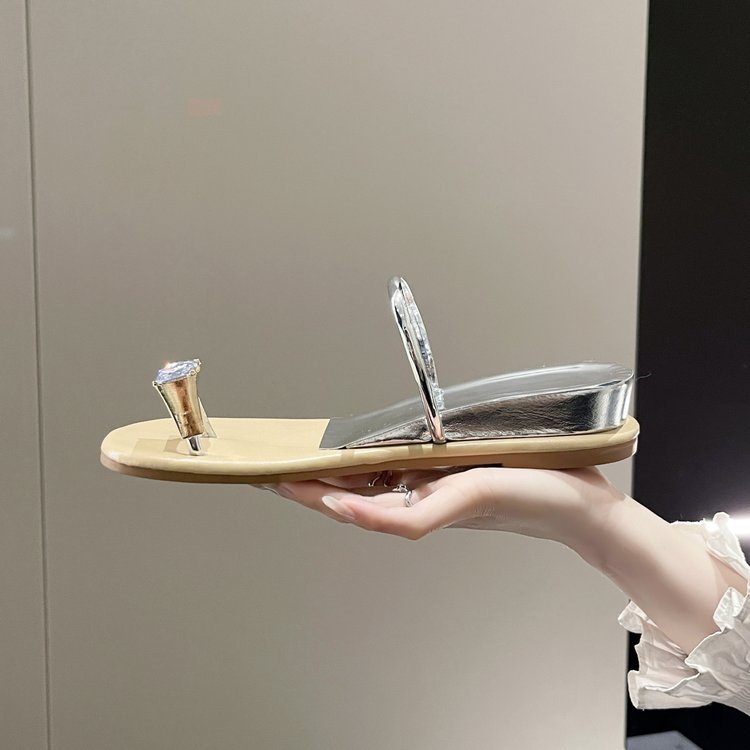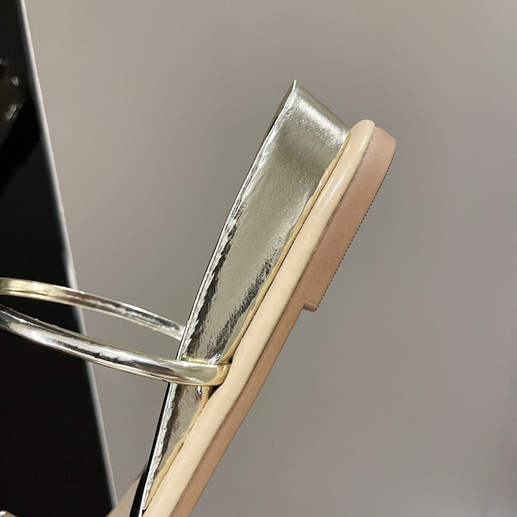 PU Square Heel Low Heel Slippers Rubber Toe
