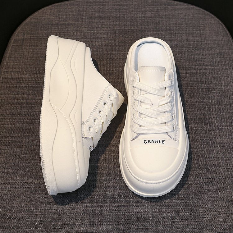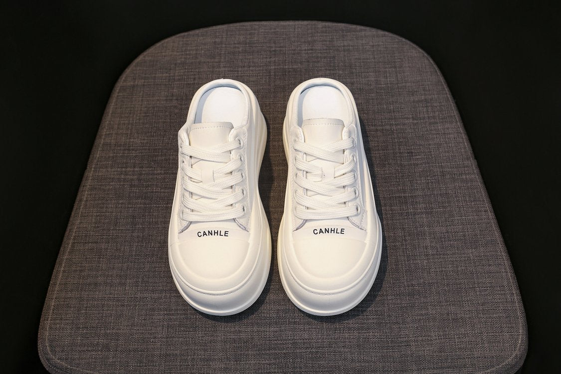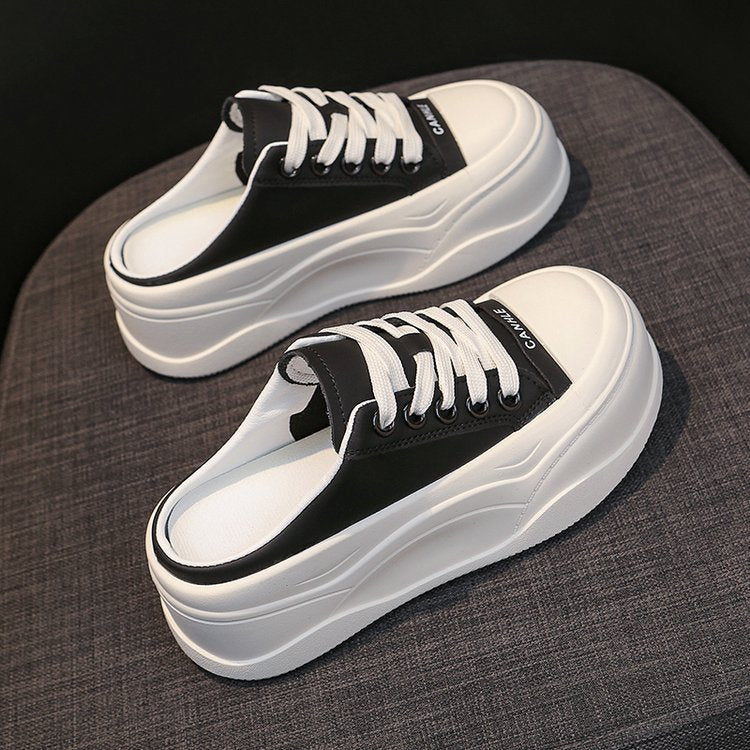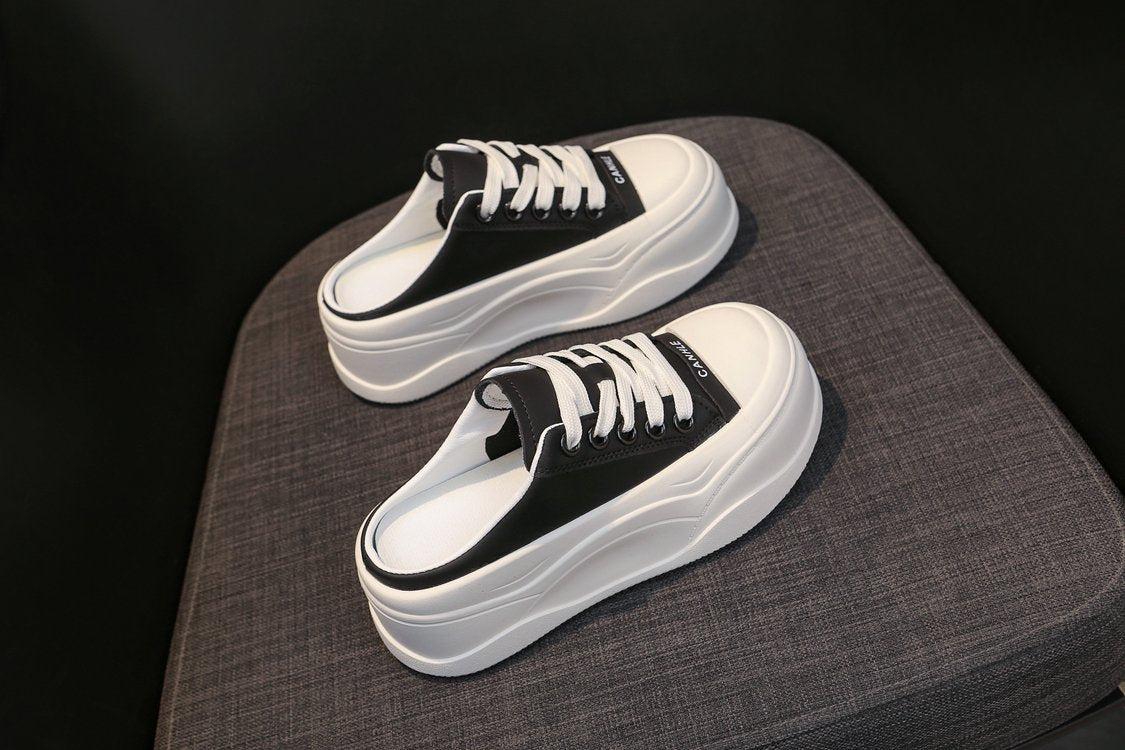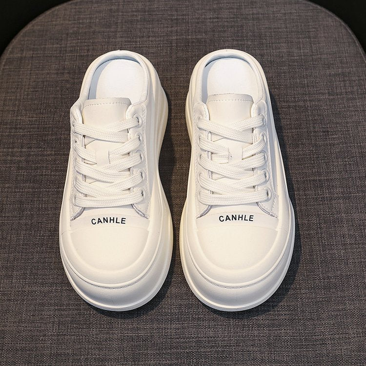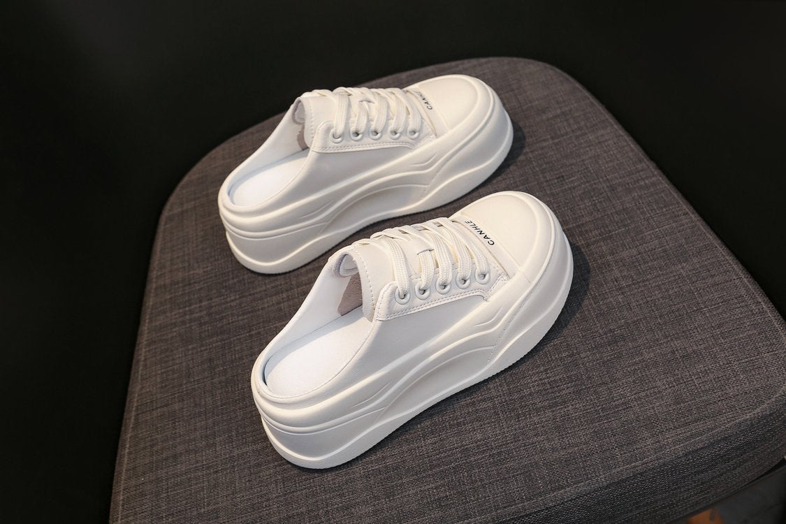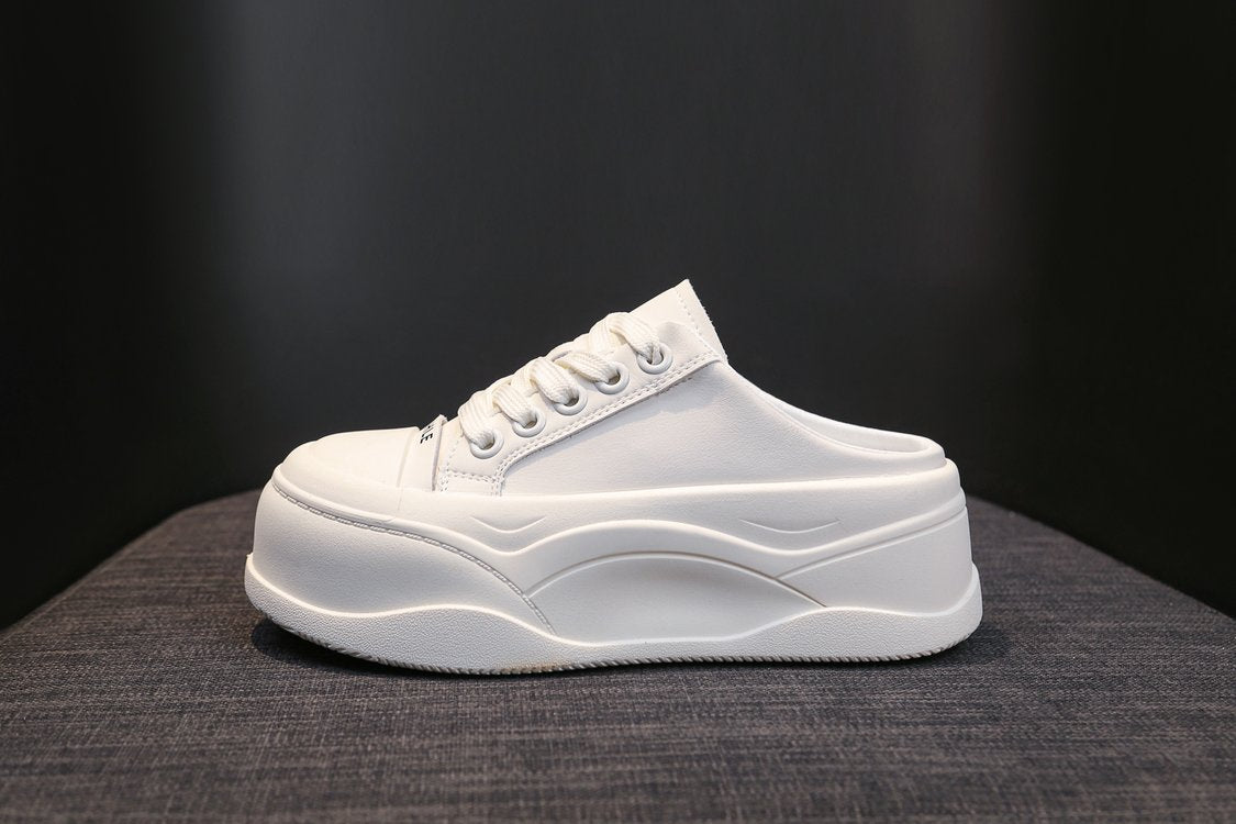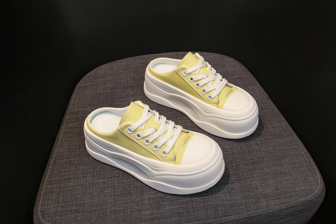 Rubber Closed-Toe Mid-Heel Slippers(3-5cm)Muffin Bottom PU