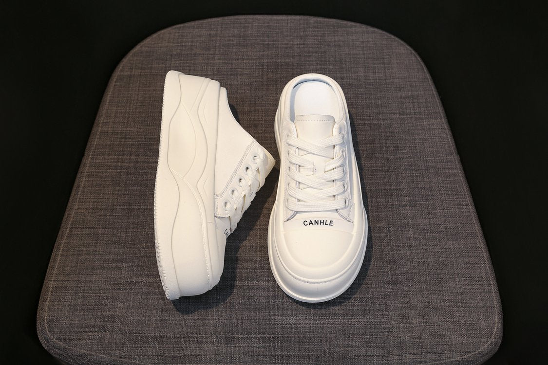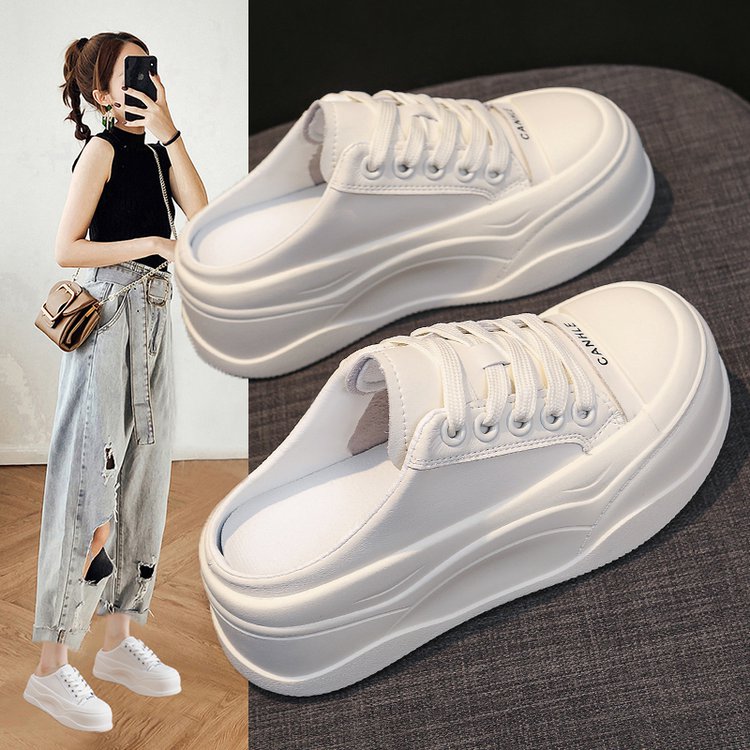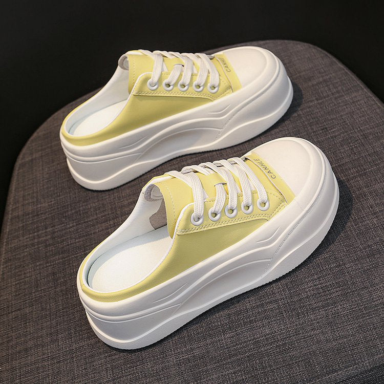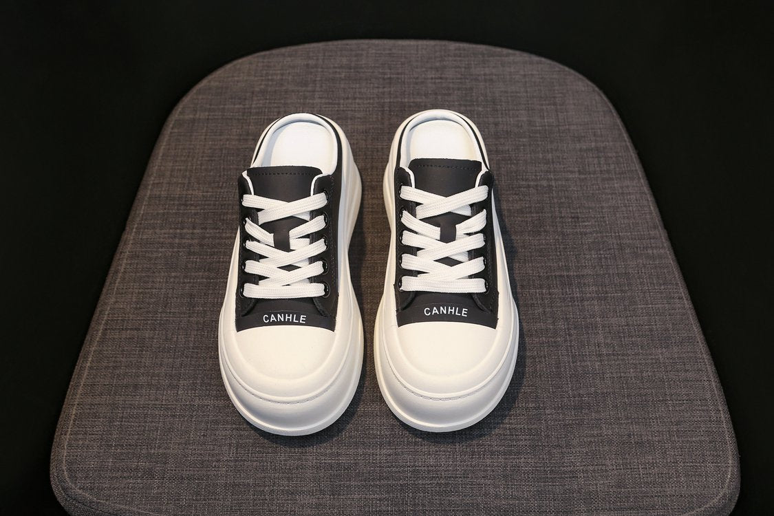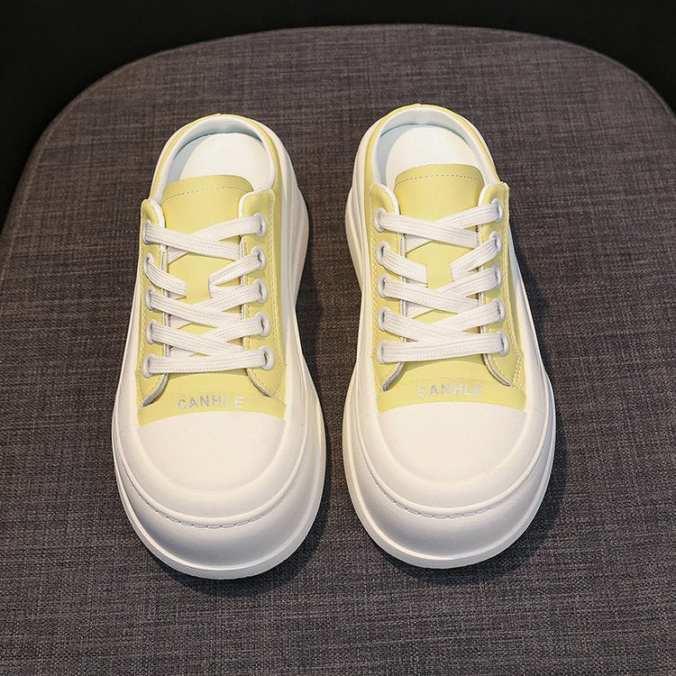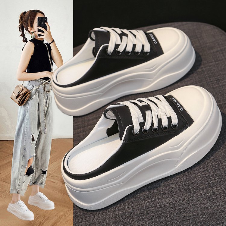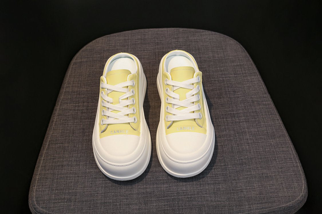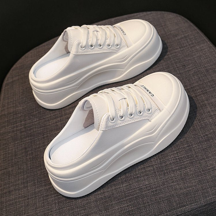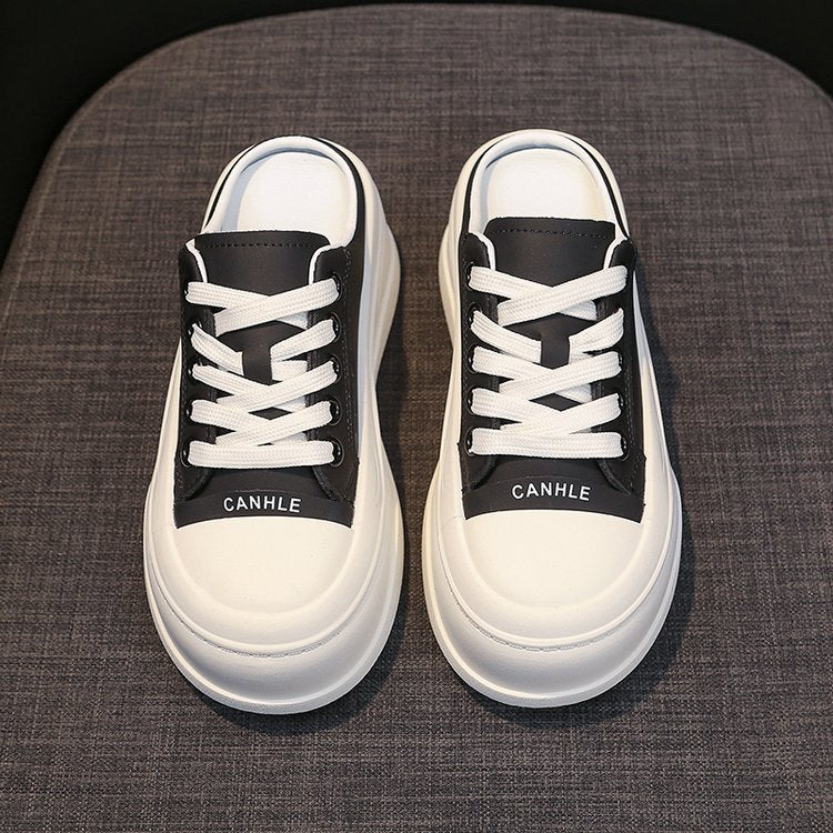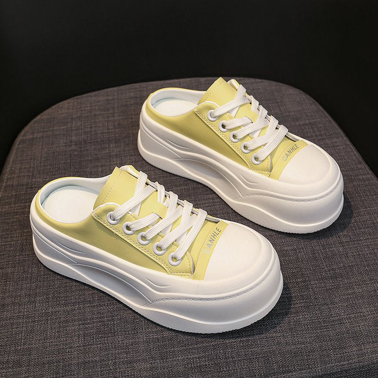 Rubber Closed-Toe Mid-Heel Slippers(3-5cm)Muffin Bottom PU